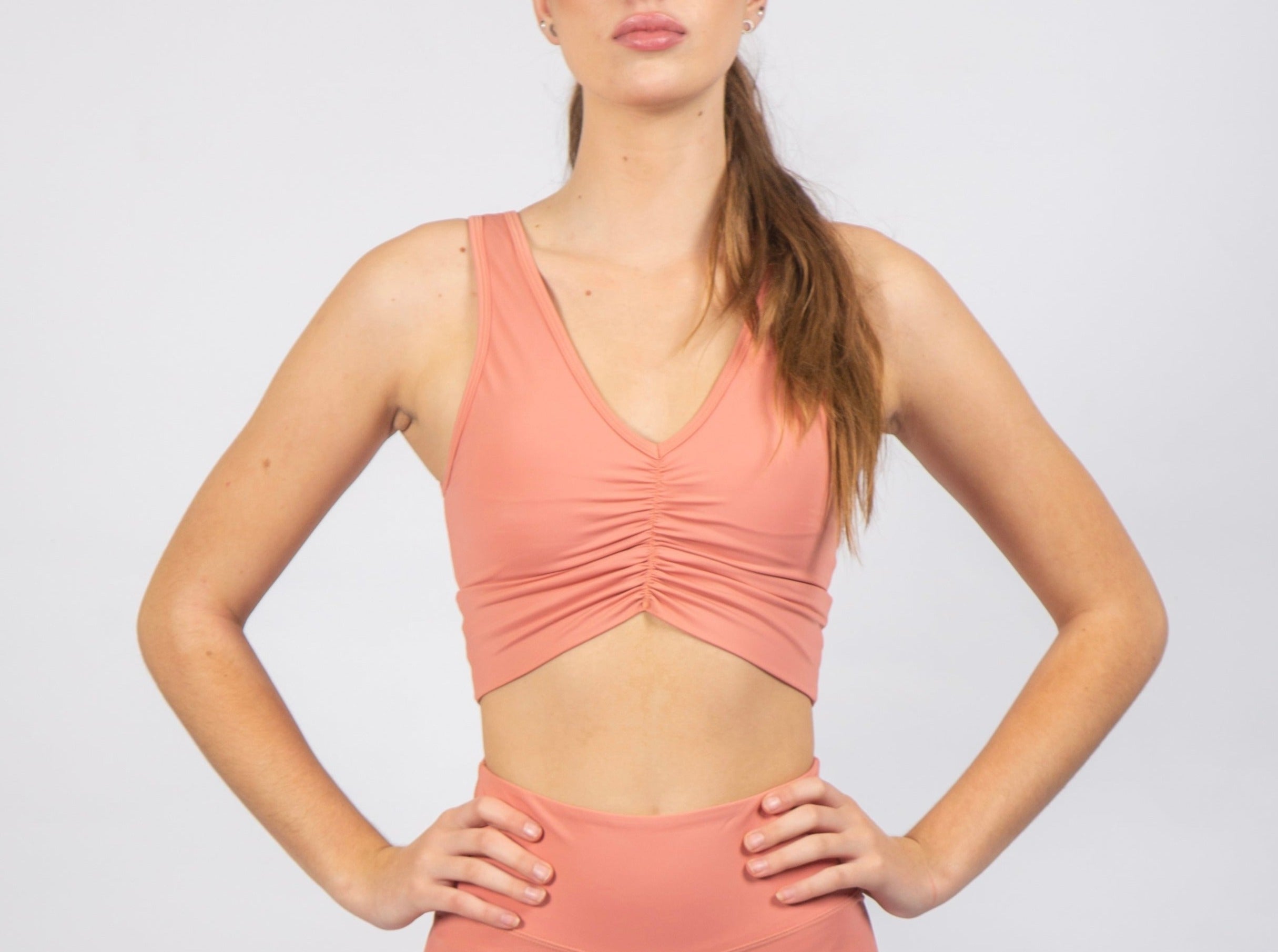 The Jasmine crop is our fun take of the classic long line active crop. Featuring ruched front details. Made with high quality regenerated ECONYL® polyamide, this crop top is a conscious active piece that will last you for many training sessions. From ocean waste to premium active styles!