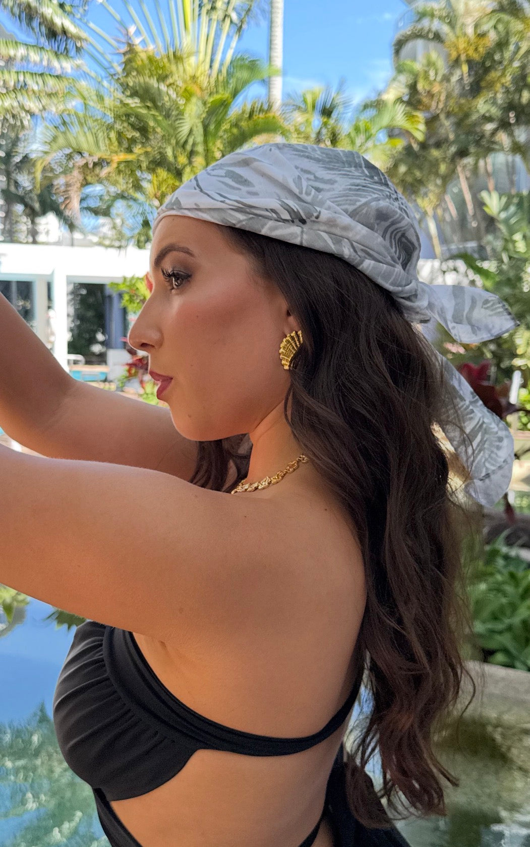 Whether by the pool, beach or bar, the Palm scarf is your perfect accessory - style it as a head or neck scarf, hair wrap or tied to your tote for a touch of coastal ease - a timeless piece you'll reach for season after season. Lightweight and breathable. Ethically designed and made in Australia.